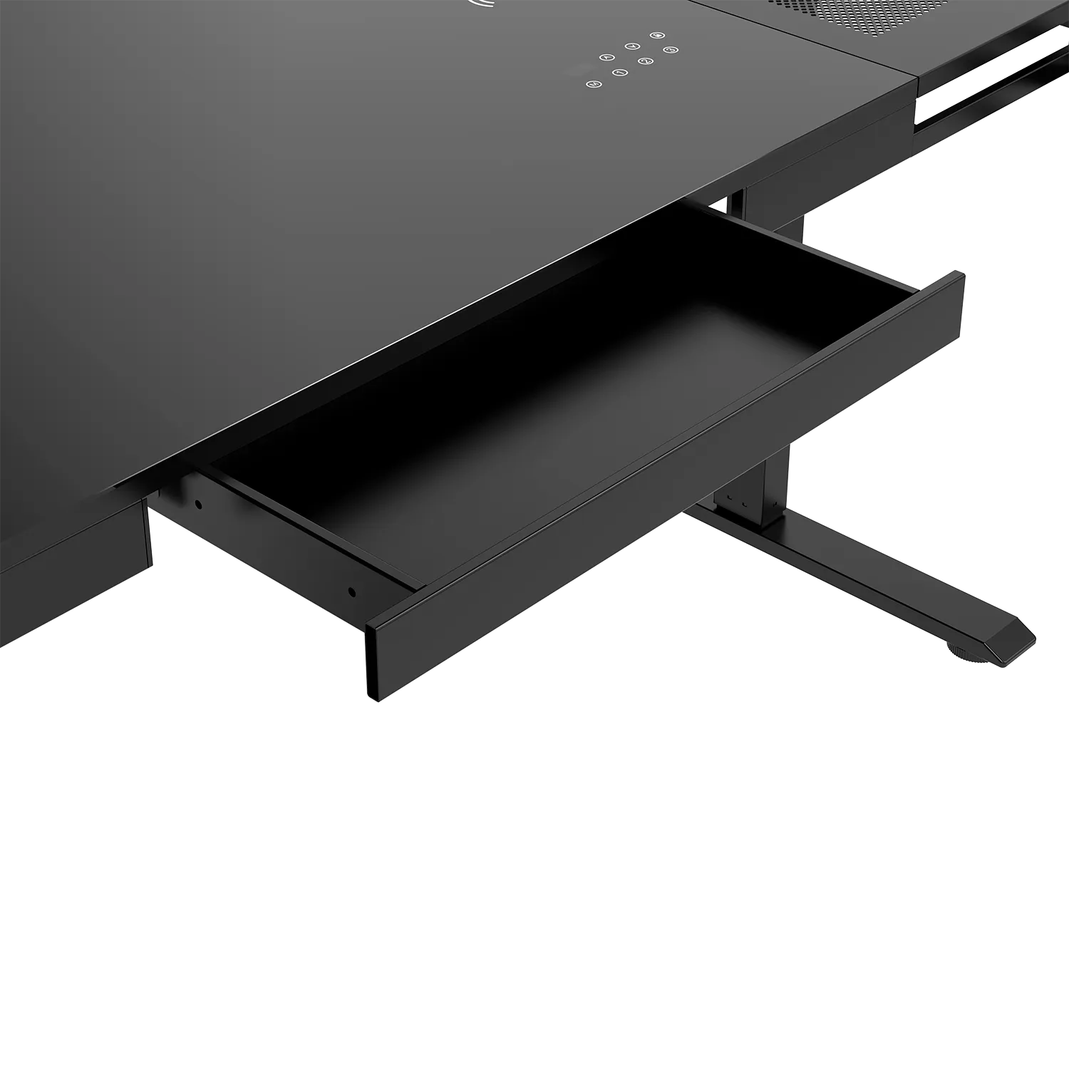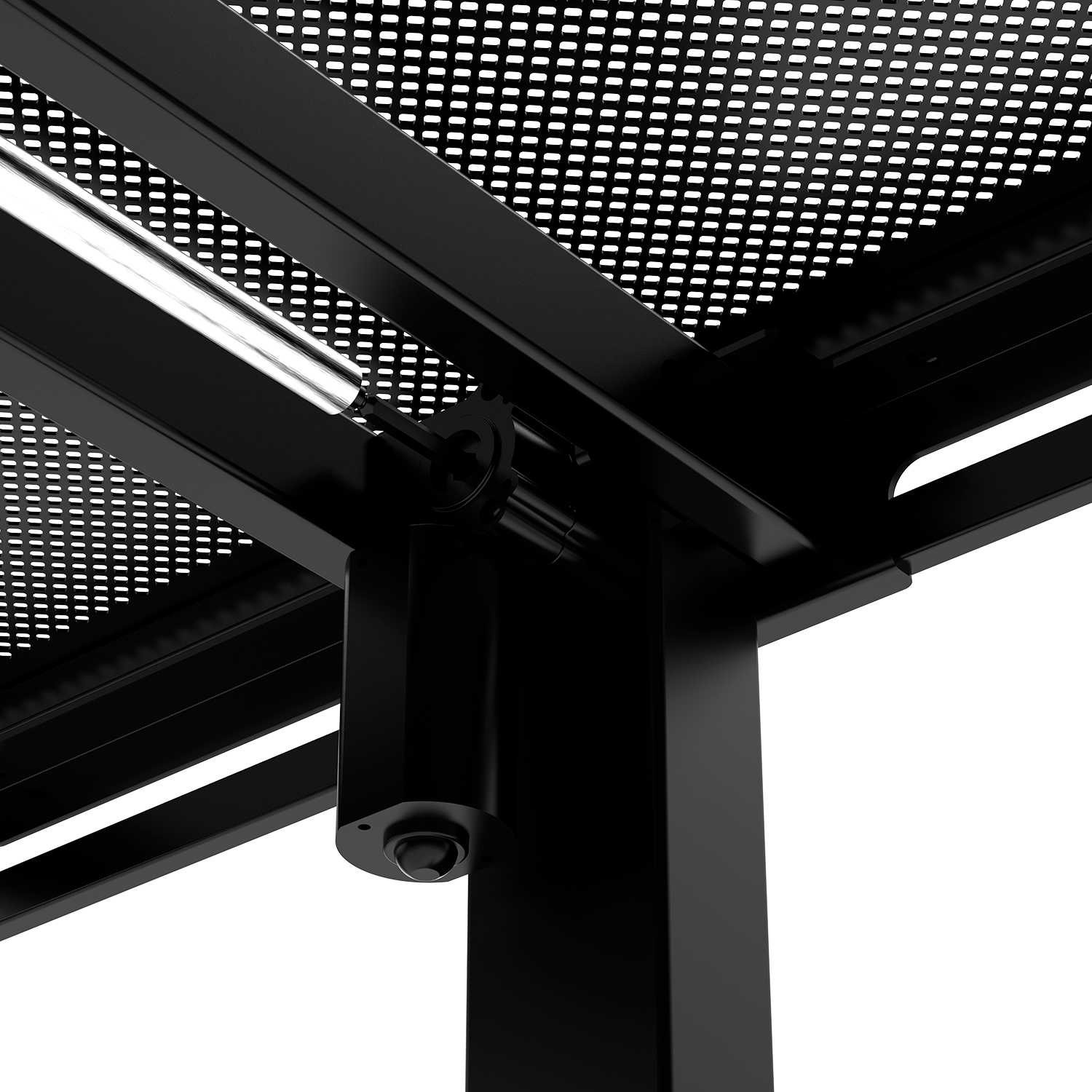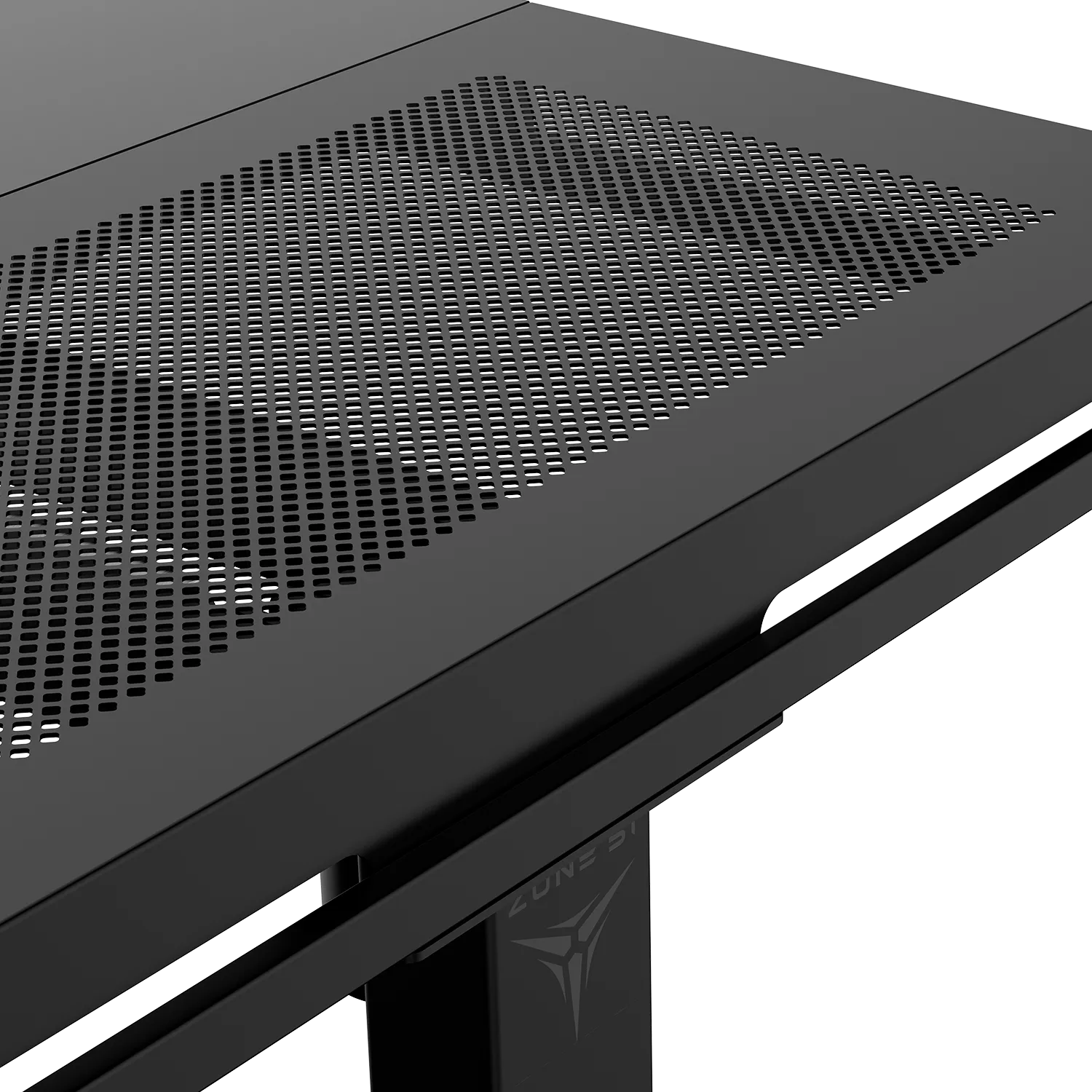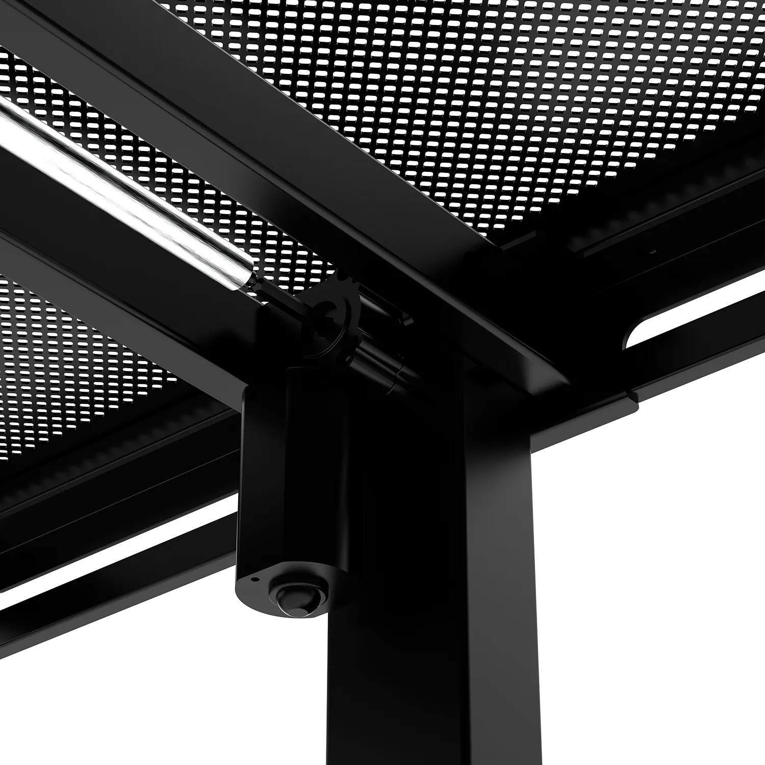 Перфорированная стальная панель справа – это не просто элемент дизайна, а результат тщательного инженерного расчета. Специальная система отверстий обеспечивает оптимальную циркуляцию воздуха, создавая естественную вентиляцию для твоего ПК и другого оборудования, размещенного под столом. Это предотвращает перегрев компонентов и продлевает срок службы твоей техники.