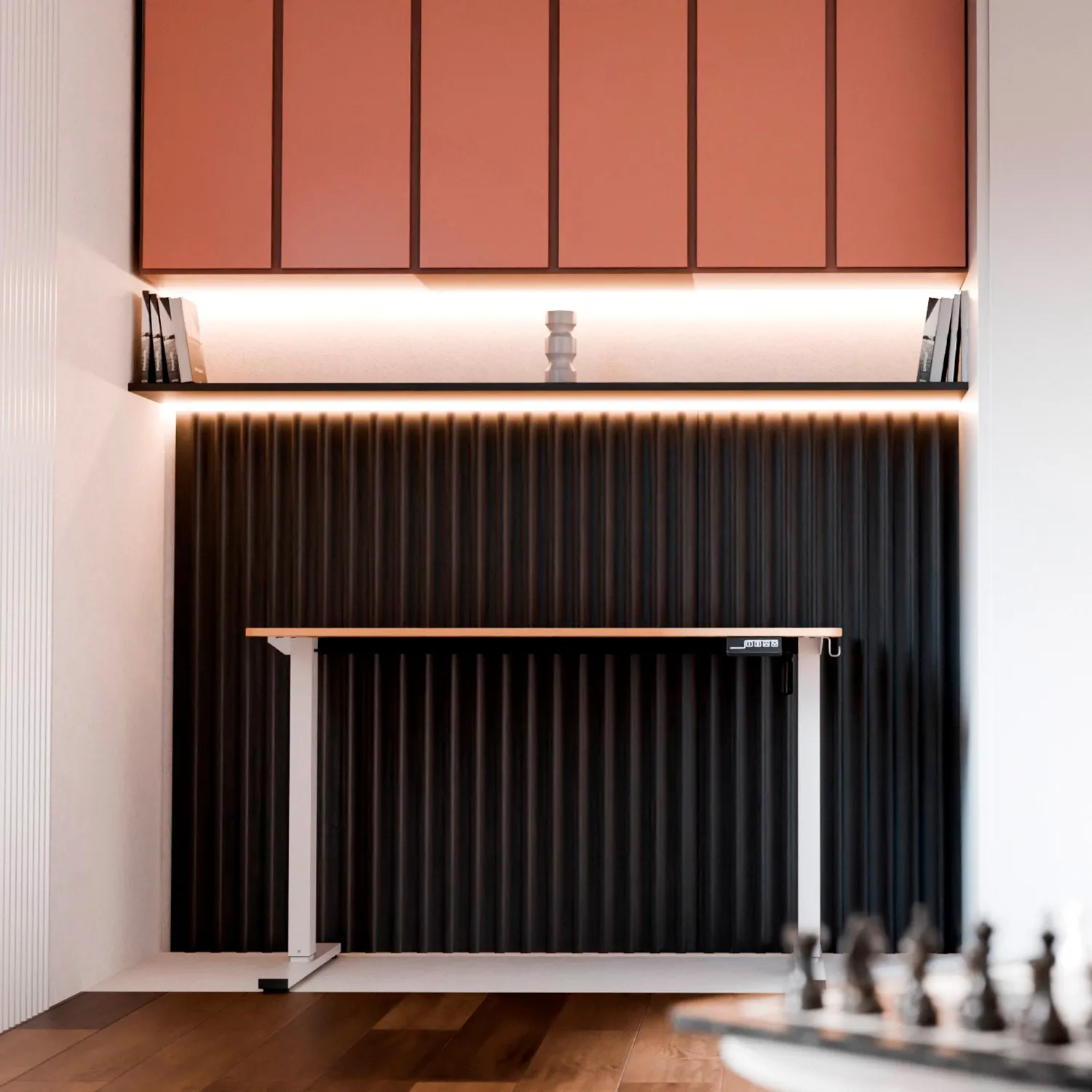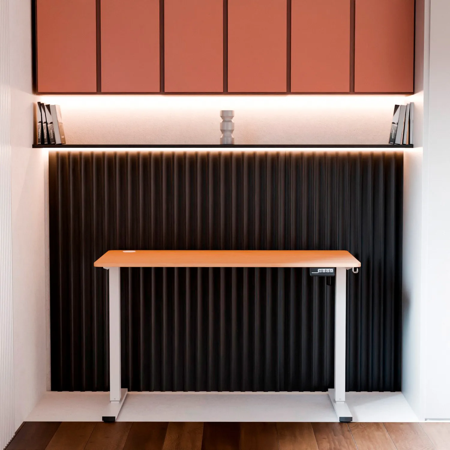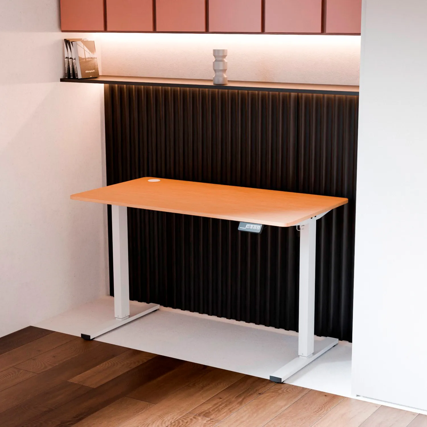 Что не понравилось: нет возможности выбрать место для блока управления высотой стола. Ранее смещался в правую часть стола, работая за ним (привычка, так располагаю мониторы и организую рабочее пространство), но теперь прямо над коленом оказывается блок управления. Так же в него упираются подлокотники кресла, если попытаться под него заехать. В итоге все время опасаюсь сломать этот блок. Было бы здорово, если бы можно было выбрать место крепления или же вовсе закрепить блок управления высотой на столешнице, сверху.