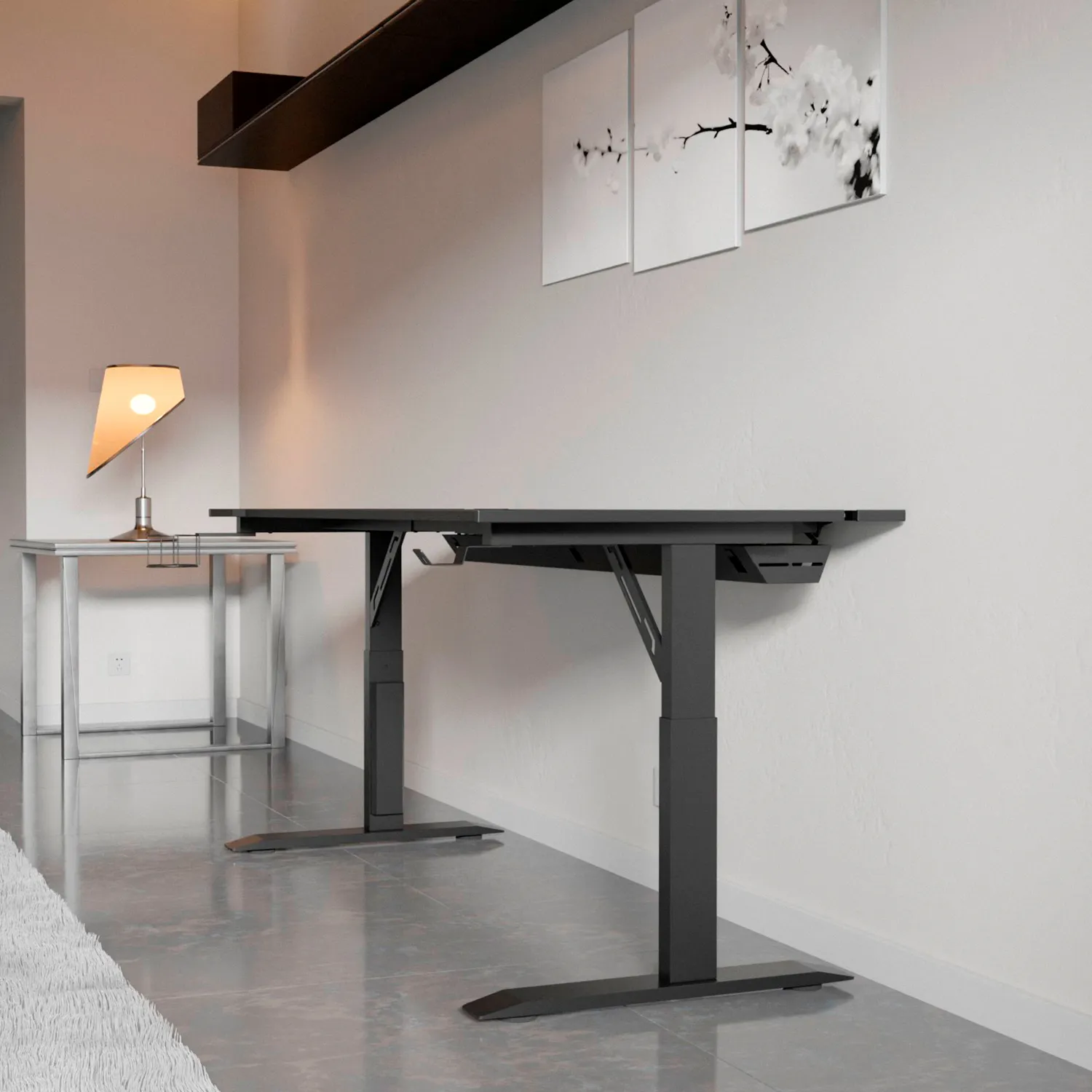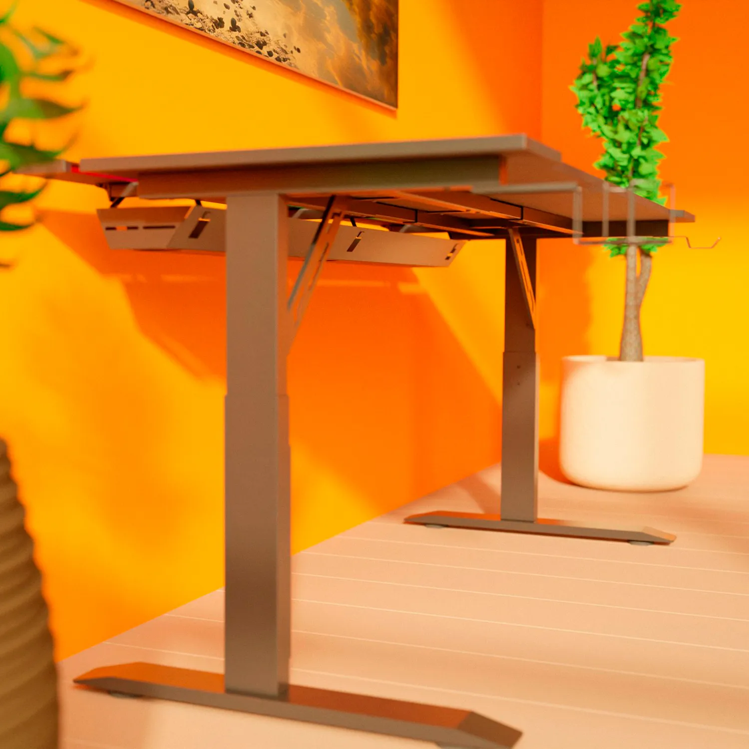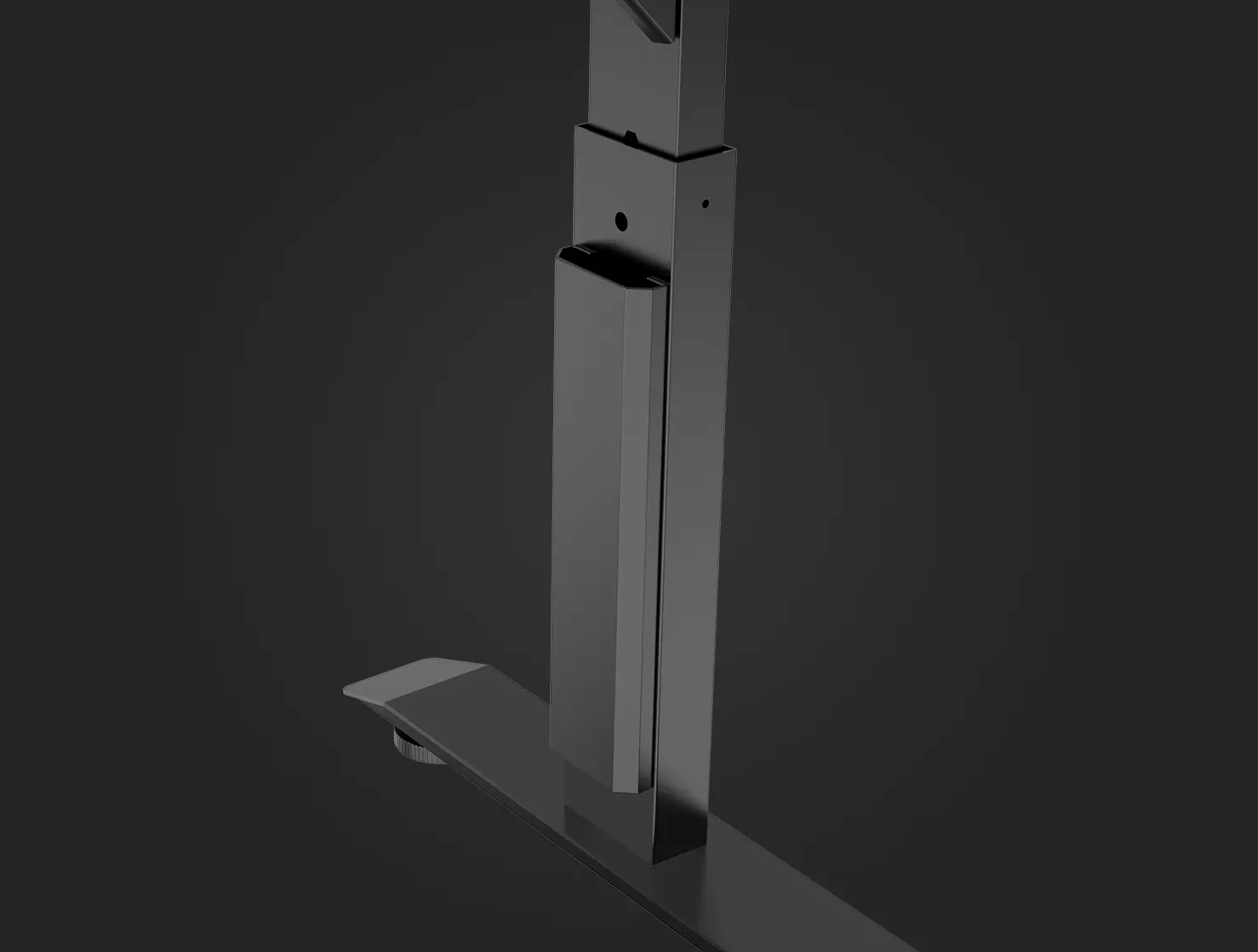 Для того, чтобы обеспечить устойчивость всей конструкции, RUNWAY оборудован стальными ножками с широкой поверхностью. Благодаря подпятникам, располагающимся на нижней части ножек, ты без проблем сможешь отрегулировать стол относительно поверхности пола.