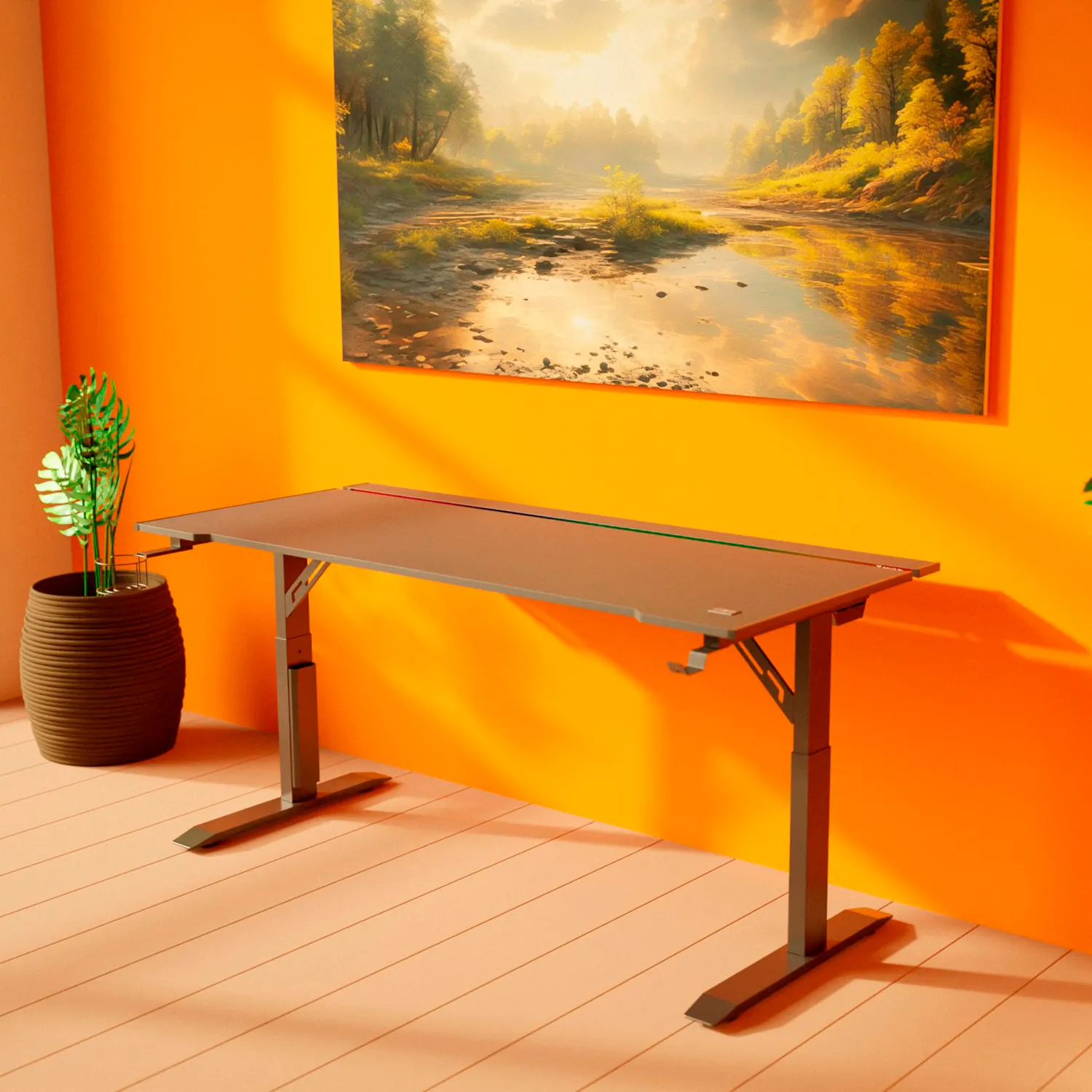 RUNWAY позволяет вручную изменять высоту стола (70/75/80 см), чтобы подобрать максимально комфортную именно для тебя.