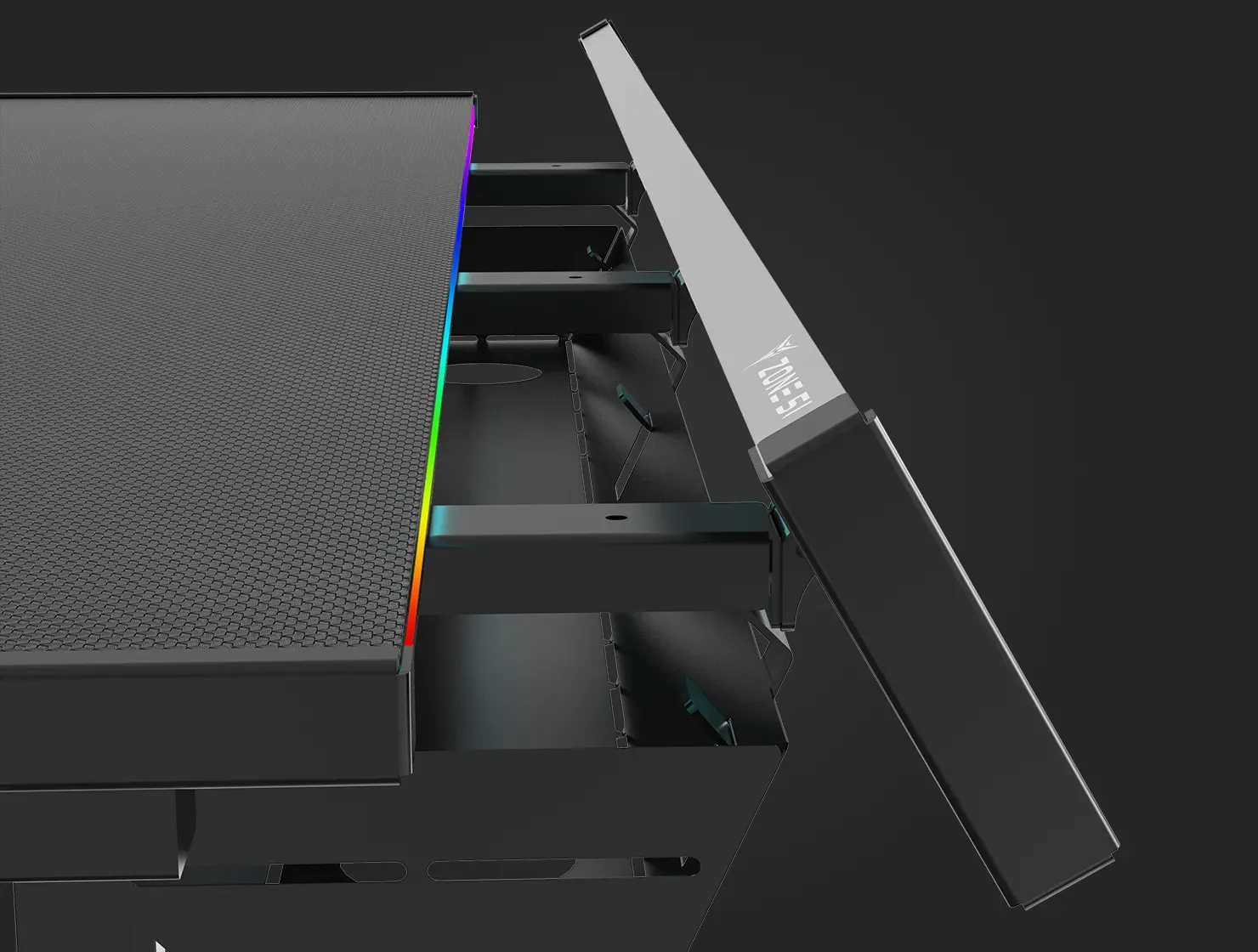 Для максимального погружения в игровую атмосферу, ZONE 51 RUNWAY оборудован подсветкой в оголовье столешницы, благодаря которой разнообразные RGB эффекты выглядят максимально иммерсивно.