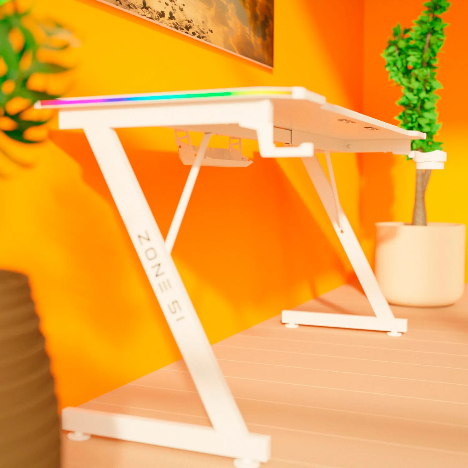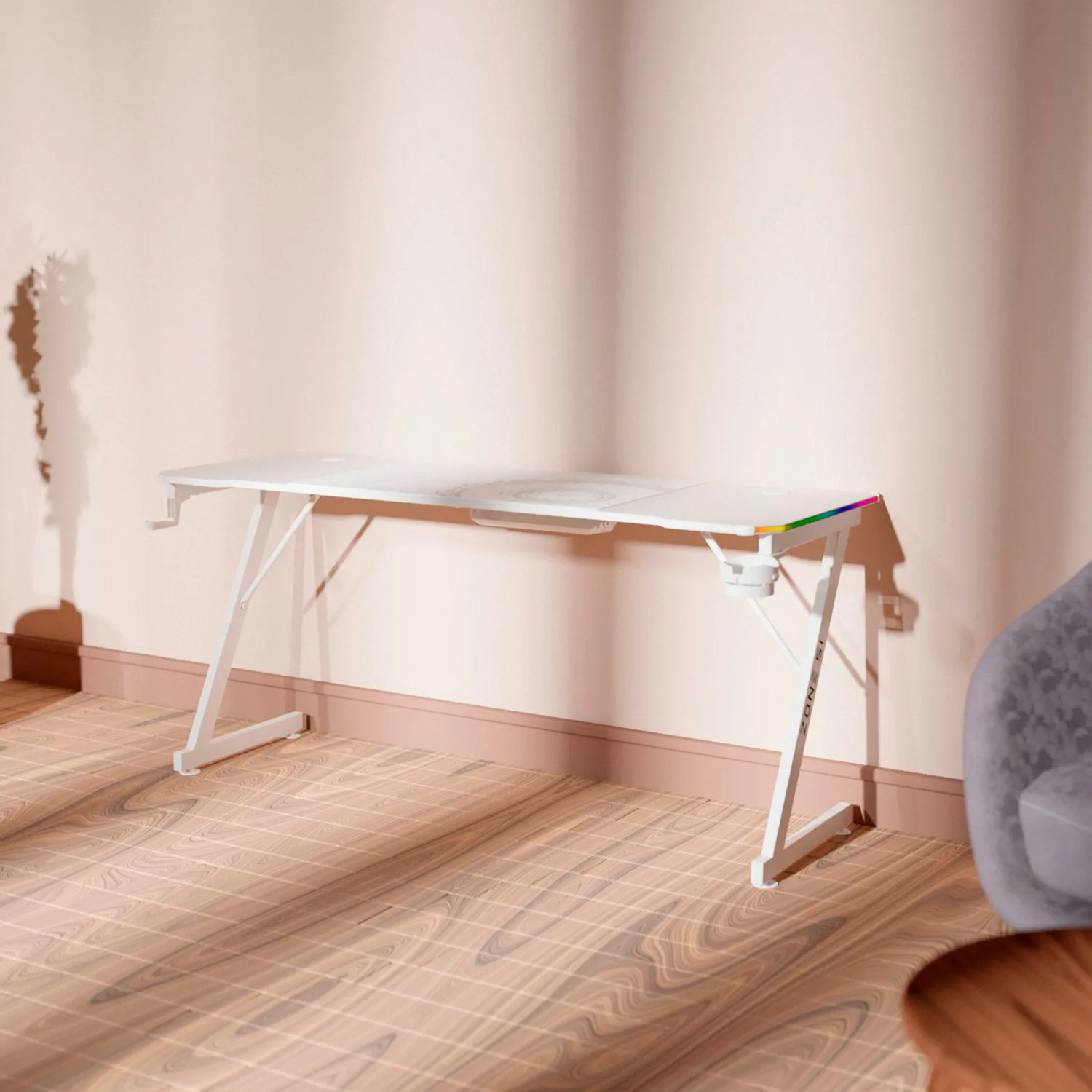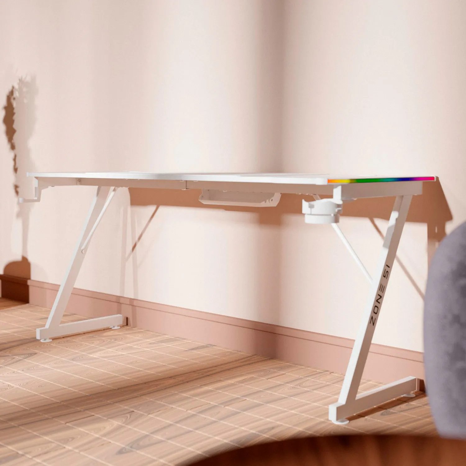 Для максимального погружения в игровую атмосферу, ZONE 51 TRINE RGB оборудован подсветкой по бокам столешницы, благодаря которой разнообразные RGB эффекты выглядят максимально иммерсивно. С помощью пульта ДУ Вы можете настраивать скорость и яркость подсветки.