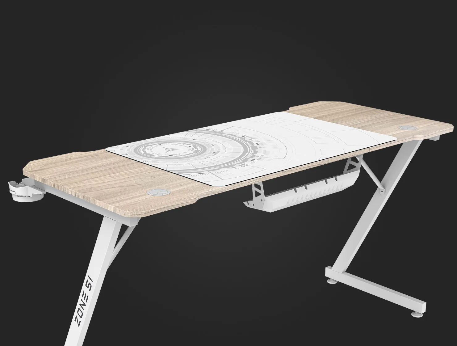 • 2 выемки и корзина под столешницей для удобного кабель-менеджмента