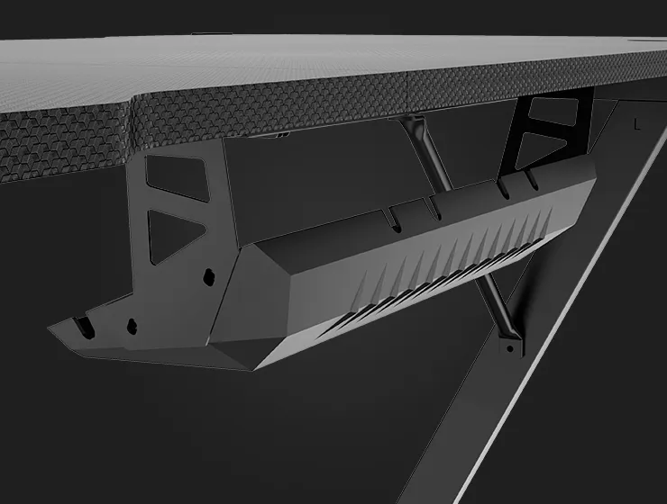 Широкая и прочная столешница из ЛДСП с покрытием из водостойкого пластика с отделкой "под карбон" позволяет разместить на рабочей поверхности монитор, игровую периферию и системный блок - места хватит для всего.
