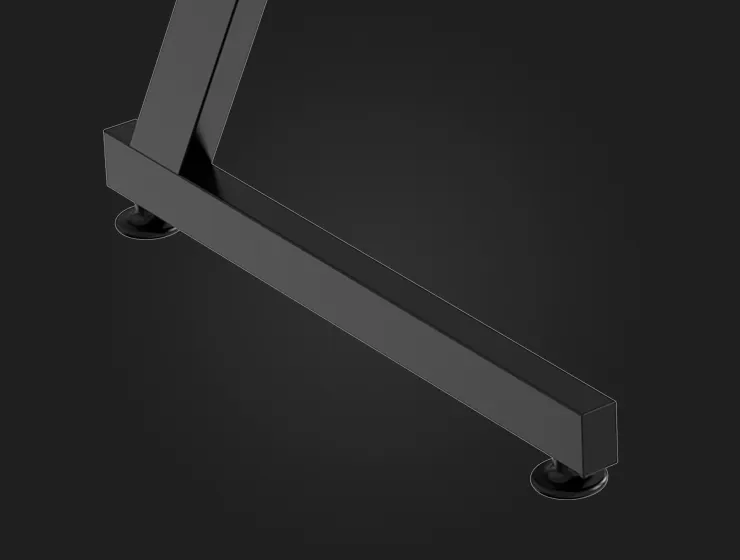Для того, чтобы обеспечить устойчивость всей конструкции, TRINE оборудован стальными ножками с широкой поверхностью. Благодаря подпятникам, располагающимся на нижней части ножек, Вы без проблем сможете отрегулировать стол относительно поверхности пола.