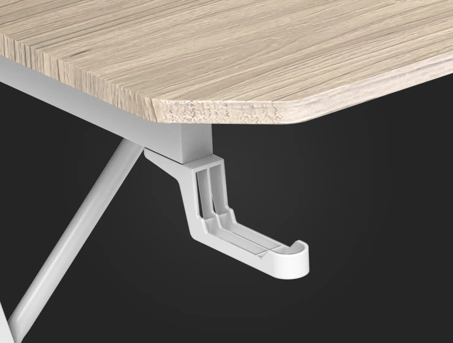 Для твоей гарнитуры тоже найдётся место. Вместо того, чтобы размещать ее на рабочей поверхности, повесь на выдвижной крюк. Быстрый доступ и порядок за столом тебе обеспечены.
