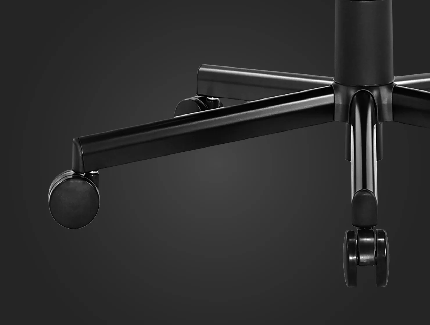 Всю конструкцию кресла Freelancer K5 удерживает пятиконечное сборное основание, которое выполнено из стали и окрашено в черный цвет. Кресло легко и практически бесшумно передвигается по любым поверхностям благодаря использованию 60 мм полиуретановых колес. Они не повреждают напольное покрытие, а также обеспечивают плотное сцепление, стабильность и неподвижность тогда, когда тебе требуется сосредоточить внимание на игре, или плавность и легкость передвижения в те моменты, когда хочется переехать.