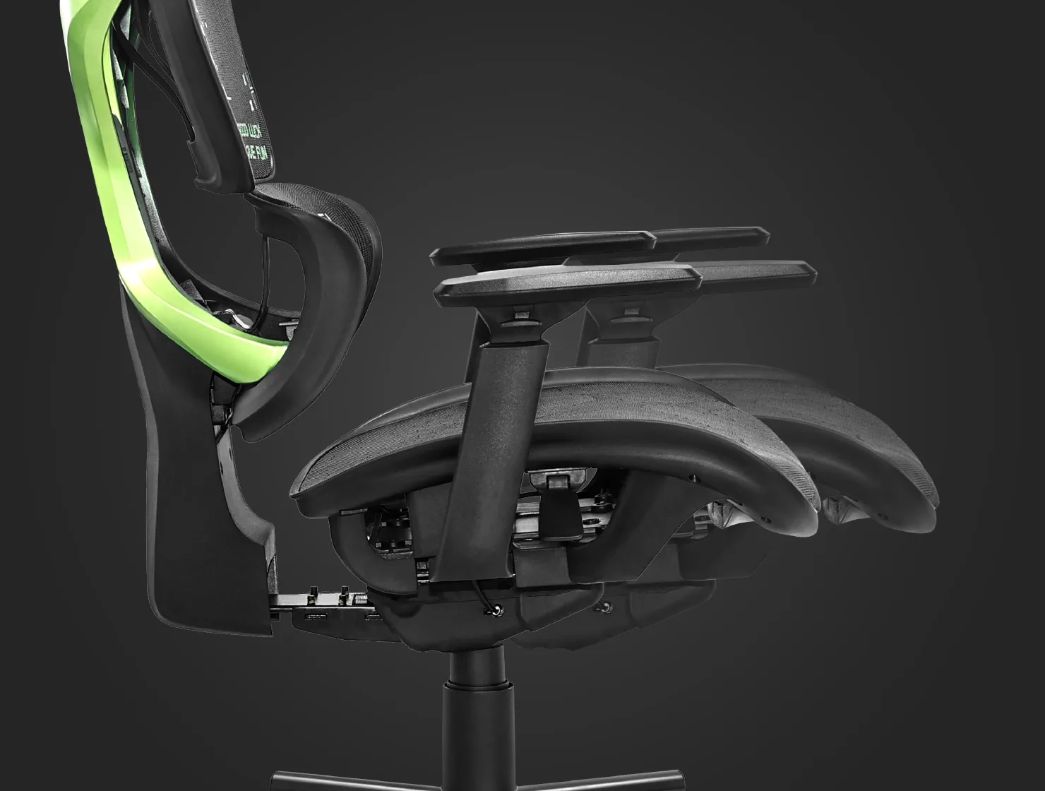 Инновационная форма каркаса разработана с применением алгоритмов топологической оптимизации. Это позволило нам создать структуру, которая равномерно распределяет нагрузку и минимизирует вес без потери прочности. Несмотря на кажущуюся жесткость, каркас обладает продуманной системой микро-деформаций. Это позволяет креслу слегка "подстраиваться" под движения пользователя, обеспечивая динамический комфорт.