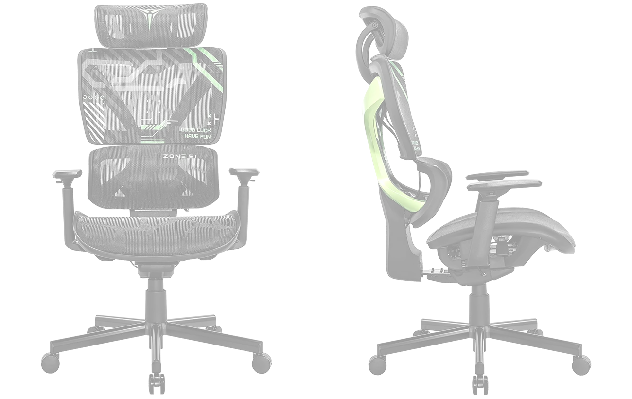 Freelancer K5 полностью переосмысливает концепцию игрового кресла благодаря инновационной сетчатой конструкции. Сетчатая поверхность активно участвует в регуляции температуры тела. Она отводит тепло и влагу, поддерживая оптимальный микроклимат независимо от продолжительности игры. Уникальная структура сетки равномерно распределяет вес тела, создавая эффект "невесомой" поддержки. Она мягко обволакивает контуры твоего тела, обеспечивая идеальную эргономику в любом положении.