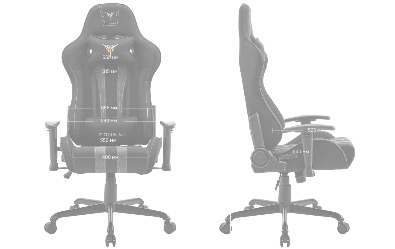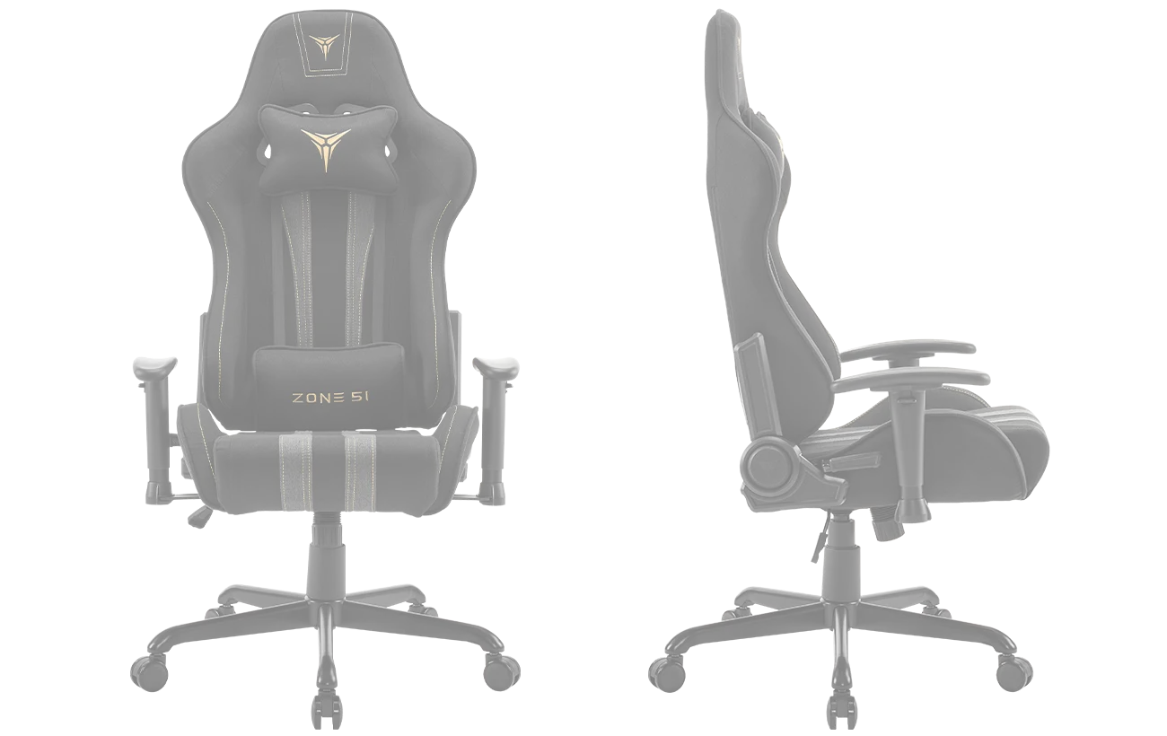 Подушки под шею и поясницу с вышитыми логотипами ZONE 51 заполнены пеной высокой плотности и пеноматериалом, что обеспечивает максимальный комфорт для шеи и поясницы. Обе подушки имеют регулировку по высоте и могут идеально подстроиться под нужды сидящего.