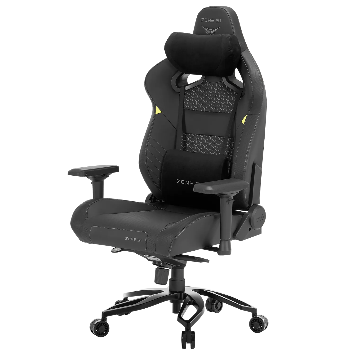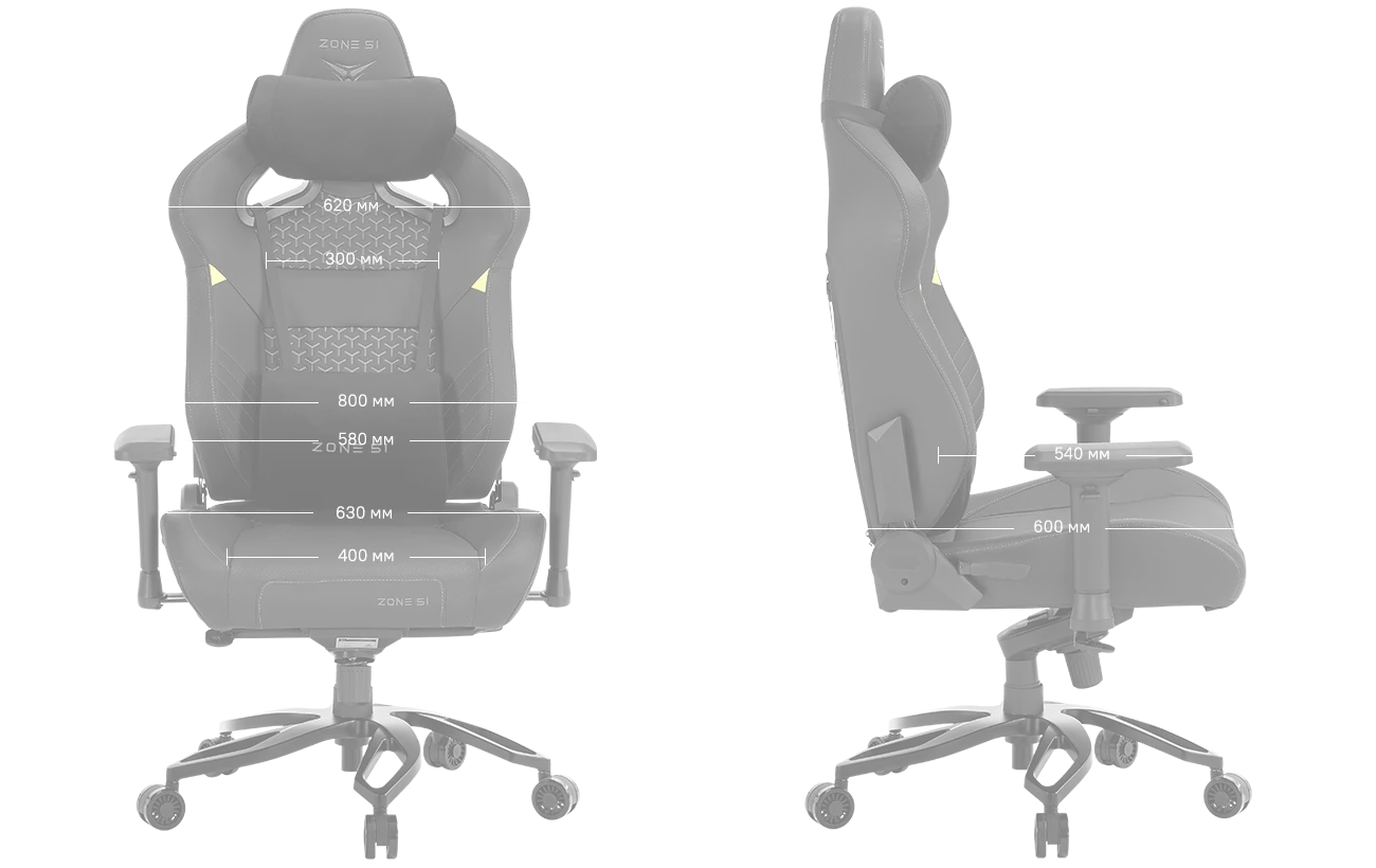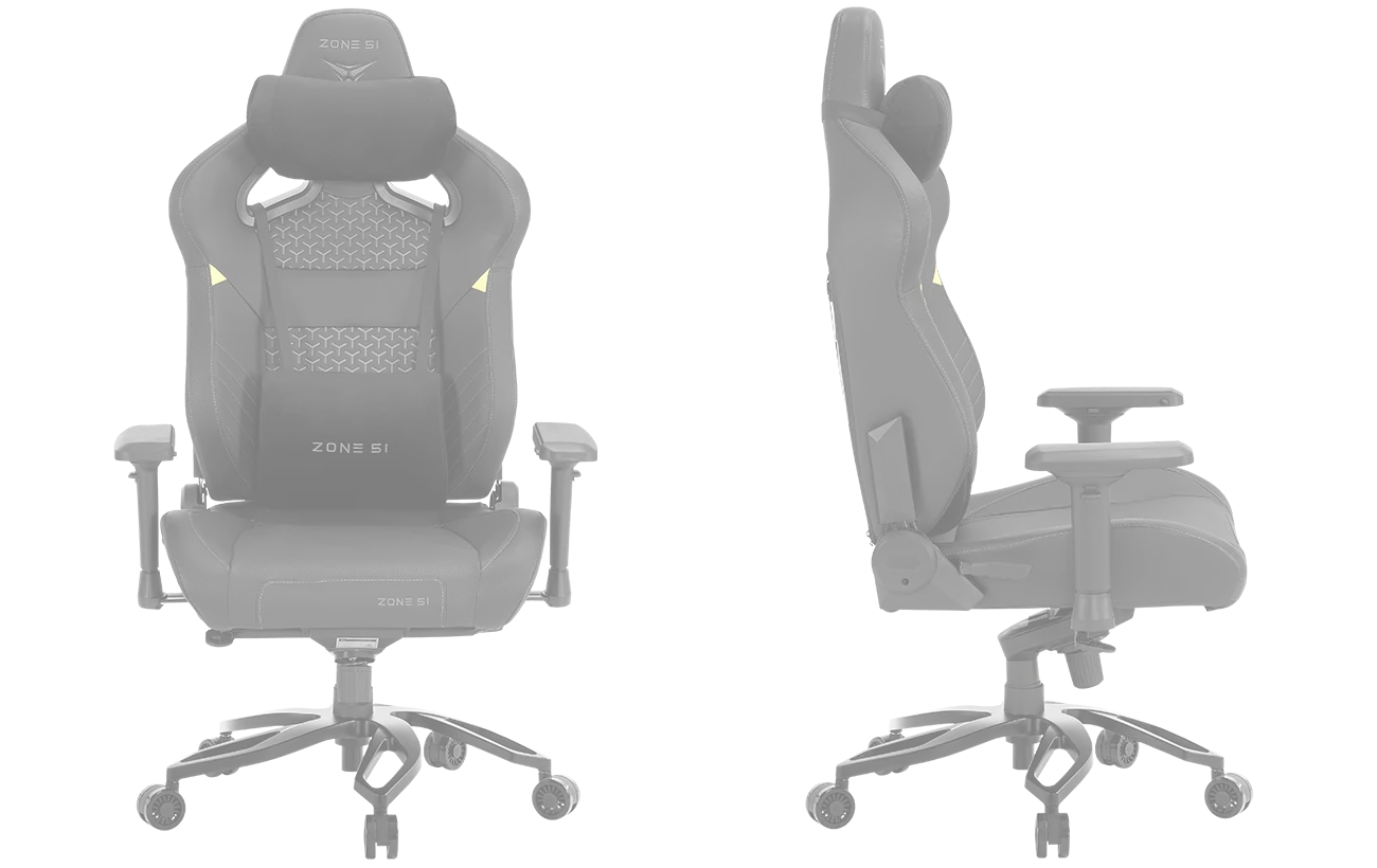 ZONE 51 Imperial оборудовано 4D подлокотниками, которые могут изменять высоту (вверх-вниз), поворачиваться (влево-вправо), выдвигаться (вперед-назад) и смещаться (к себе-от себя). Выполнены они из мягкого полиуретана. Благодаря им можно провести индивидуальную настройку под любого пользователя, за счет этого снижается нагрузка на предплечья.