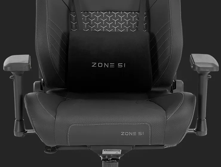 Подушки под шею и поясницу с вышитыми логотипами ZONE 51 заполнены пеной высокой плотности, что обеспечивает максимальный комфорт для шеи и поясницы. Идеальная форма и правильно подобранная плотность материала позволяют снять нагрузку с шеи и поясницы. Теперь погружение в игровой процесс будет происходить без единого намека на дискомфорт.