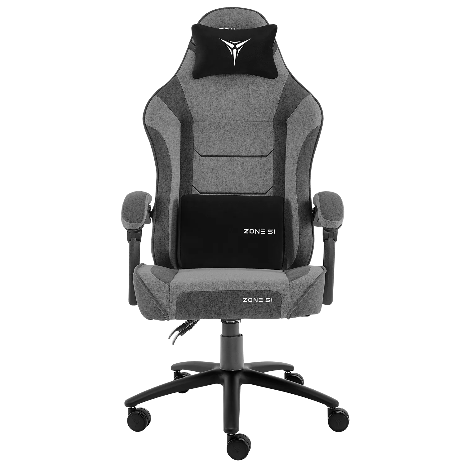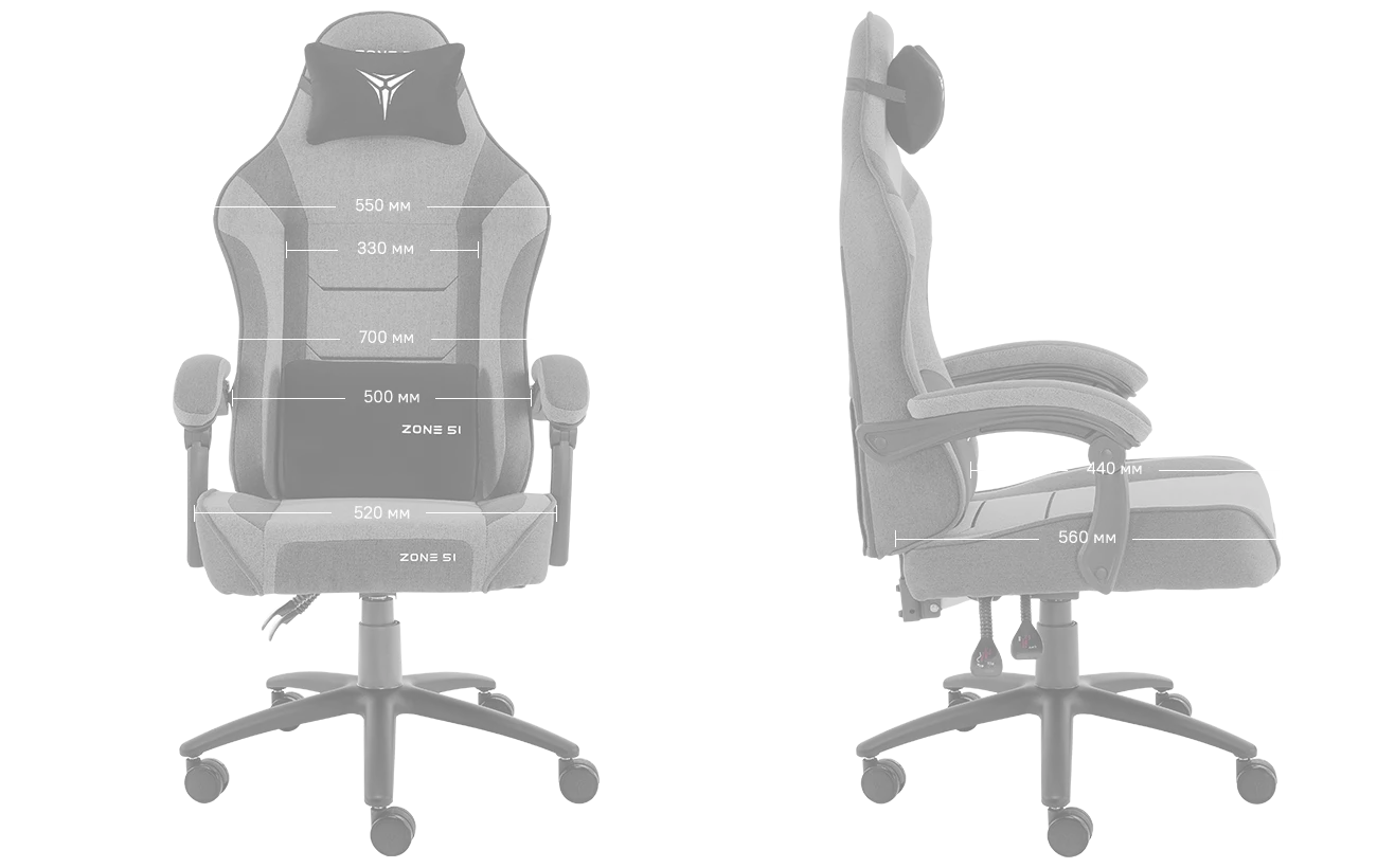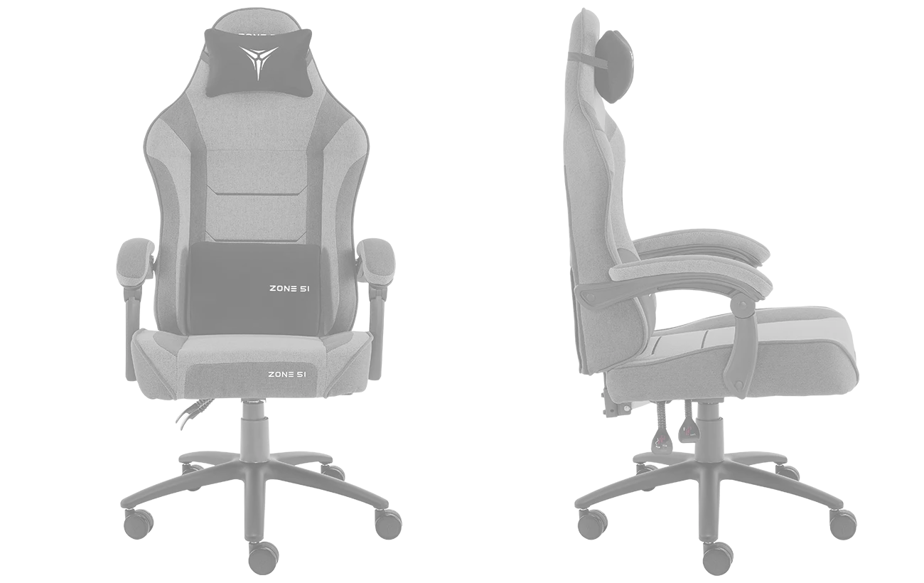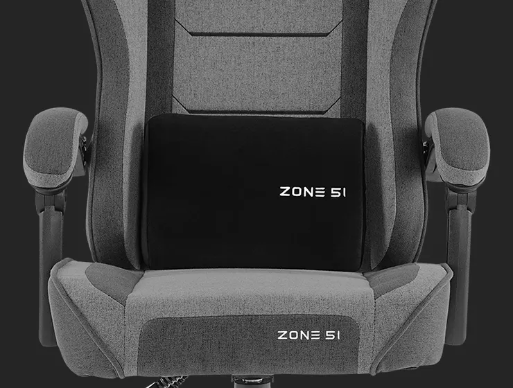 Подушки под шею и поясницу с вышитыми логотипами ZONE 51 заполнены пеной высокой плотности и пеноматериалом, что обеспечивает максимальный комфорт для шеи и поясницы. Обе подушки имеют регулировку по высоте и могут идеально подстроиться под нужды сидящего.