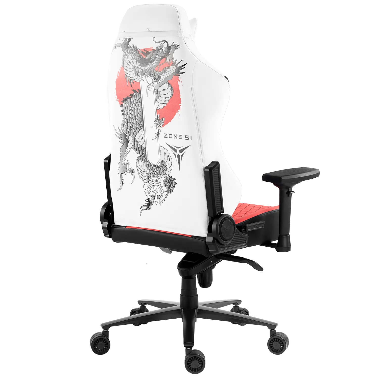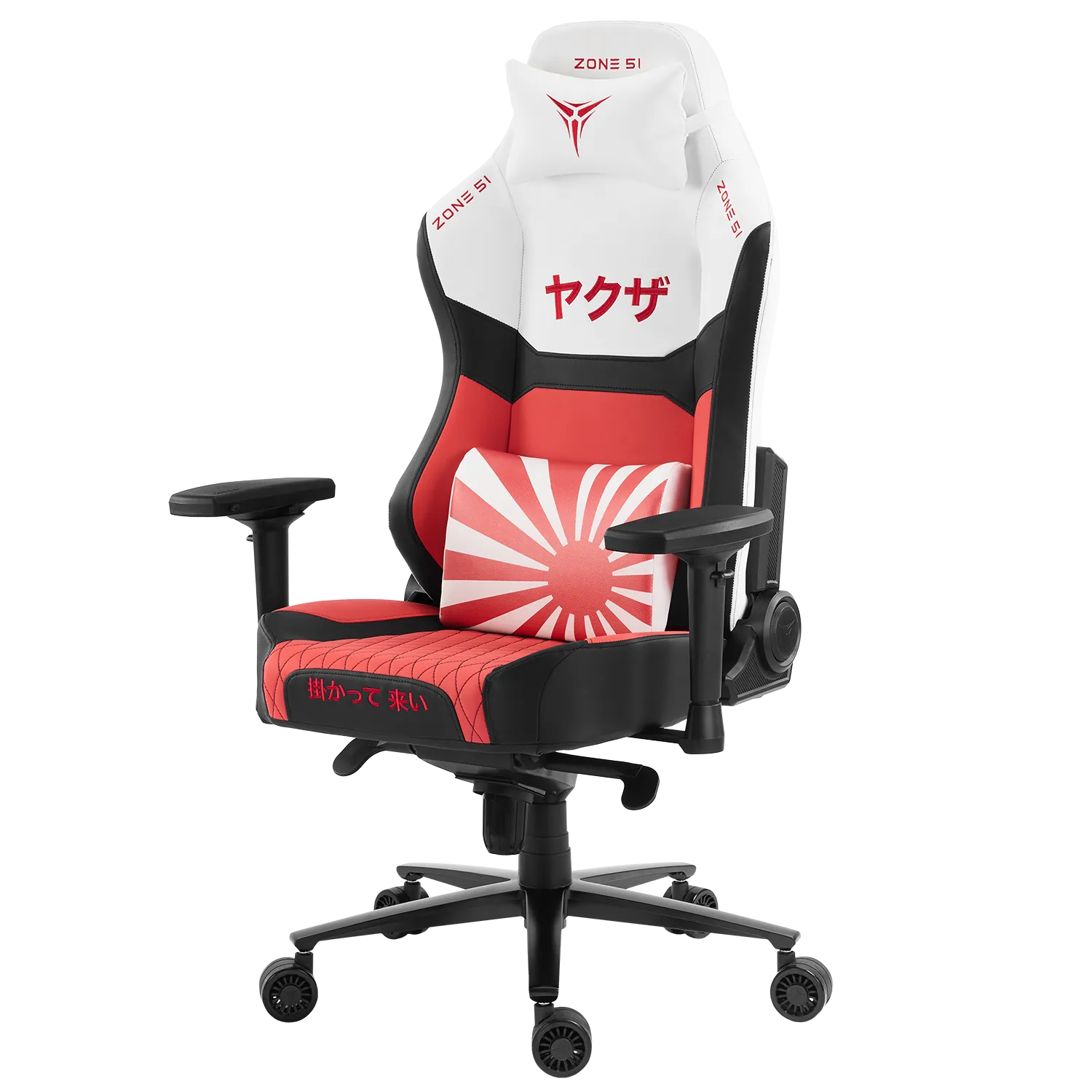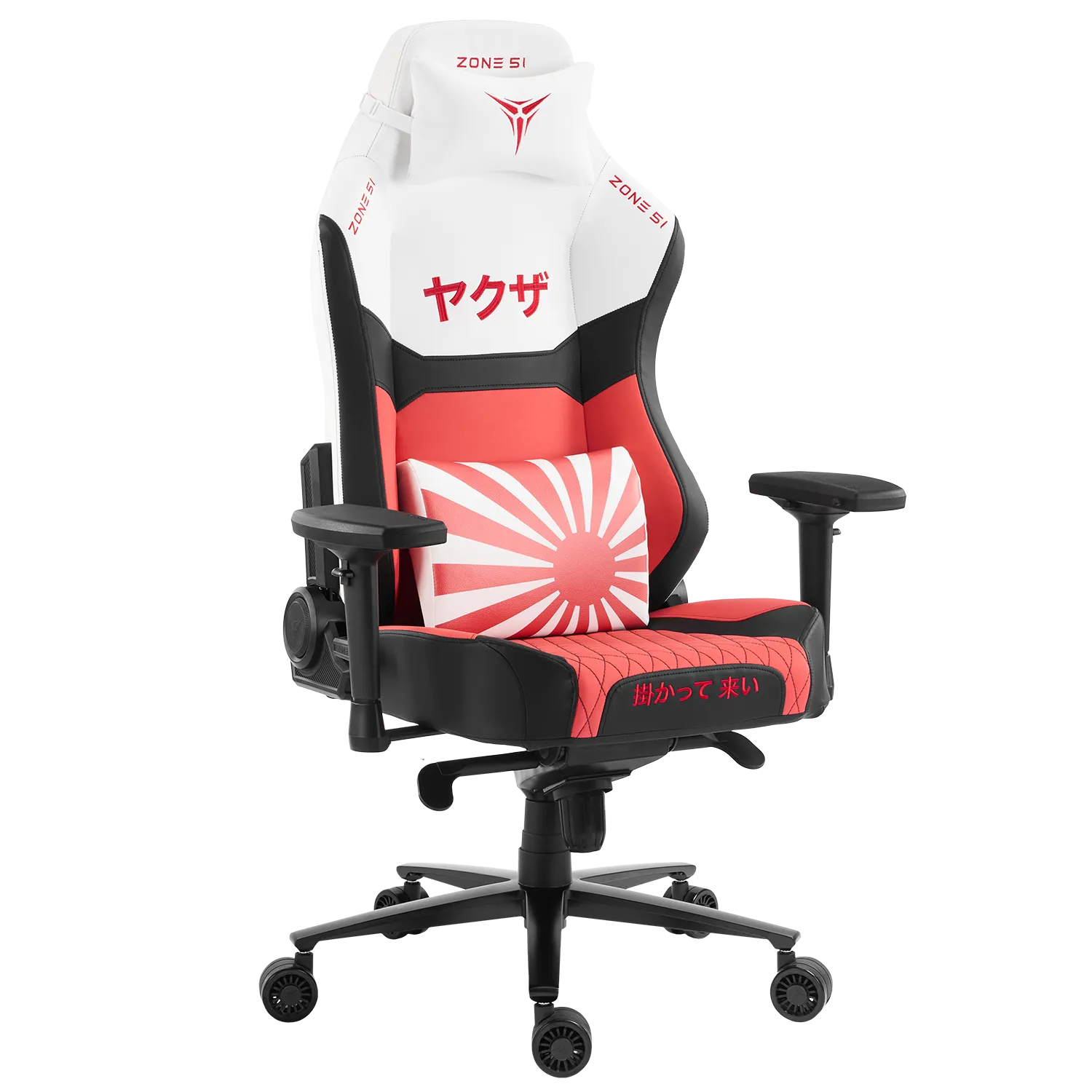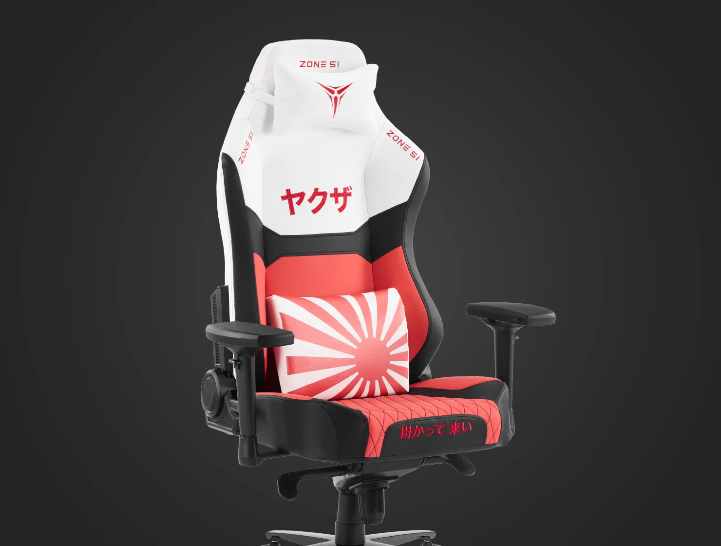 ZONE 51 YAKUZA Dragon – это произведение искусства, вдохновленное страной восходящего солнца. Белоснежная экокожа, напоминающая чистоту снежных вершин Фудзи, служит холстом для ярких акцентов: алый флаг Японии, гордо реющий на передней части подушки, иероглифы "Якуза" ("путь чести"), выведенные алыми стилизованными линиями, и легендарный дракон – его фигура, словно татуировка, опоясывает заднюю часть кресла, извиваясь на фоне аутентичных цветов. Это не просто кресло, а символ силы и гармонии, где каждый элемент рассказывает историю древней мудрости и непоколебимой воли.